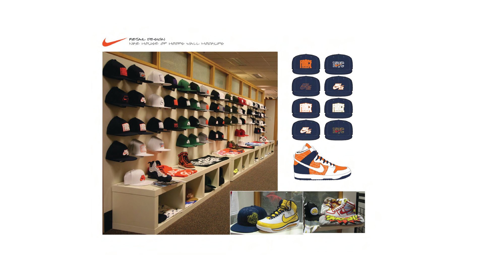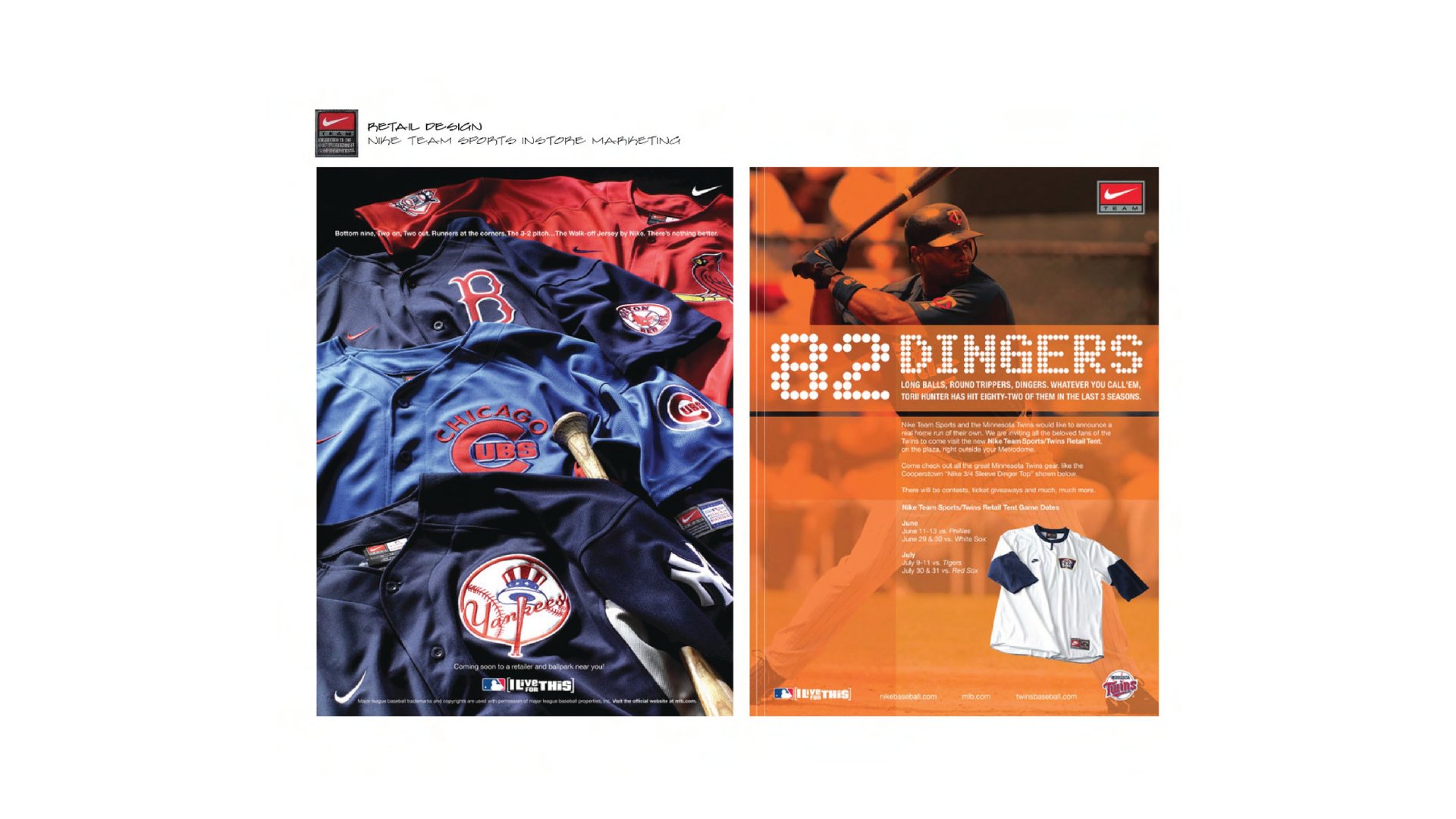 Provided creative direction and visual mockups for seasonal in-store visual product presentations for Nike Retail, Licensed Team Shops and Key Wholesale partners.